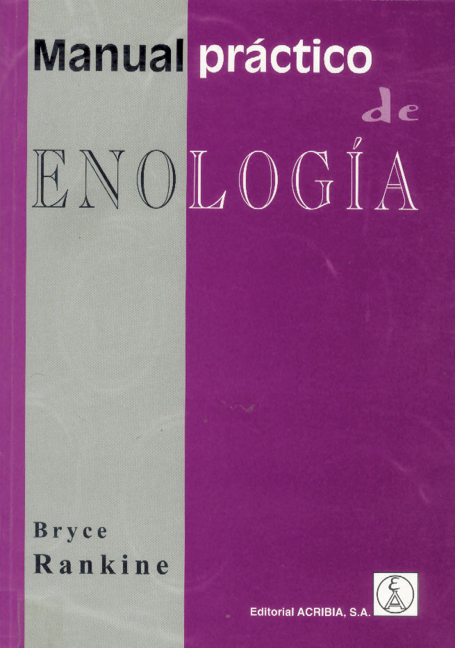 Cómo usar este libro. Antecedentes de la industria vinícola. Desarrollo y composición del racimo. Establecimiento y distribución de una bodega. Métodos de vinificación. Métodos de manipulación de uva y mosto. Microbiología y fermentación. Ajuste de la acidez en mostos y vinos. Operaciones de manipulación del vino. Clarificación. Estabilización. Oxidación. Fermentación maloláctica. Maduración en roble. Filtración. Embotellado y embalado. Peligros en la bodega. Higiene en la bodega y disposición de residuos. Evaluación sensorial del vino. Defectos del vino. La composición de los vinos. Control de calidad. Análisis del vino. Rutas del vino. Apéndice I: Requisitos legales. Apéndice III: Infección del corcho y cierre de la botella.